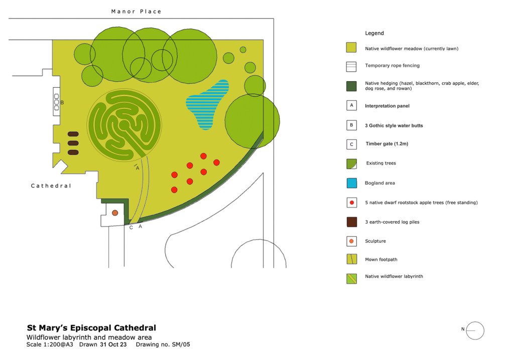 The Cathedral grounds are currently undergoing a process of regeneration, with planning permission now secured to develop a community garden on the north lawn and a native wild flower meadow on the south lawn. Both developments include orchard planting.